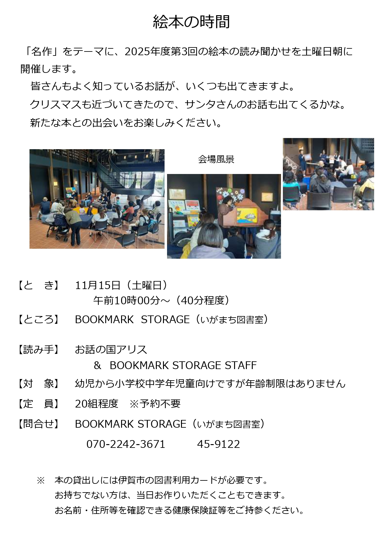 【問合せ】BOOKMARK STORAGE(いがまち図書室)